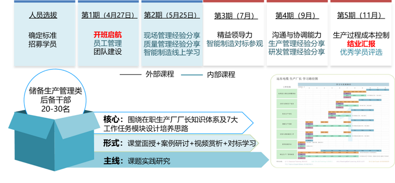 遠東于行業內率先引入“精益生產”、“智能制造”理念,遠東大學生產學院針對不同條線、不同崗位導入精益生產各個模塊的學習內容,舉辦有精益廠長特訓營、精益班組長特訓營、精益標桿游學項目,同時開辦了智能制造專題培訓、研發工藝人員培訓、技術營銷專題培訓、遠東生產管理模式活力營等項目。
